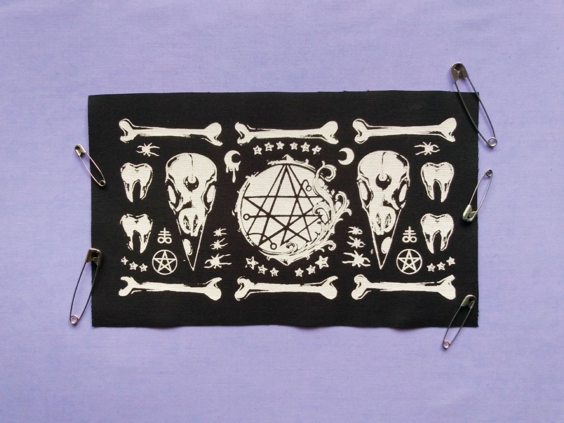 Crow Skulls & Bones Necronomicon Horror Goth Sew-on Patches