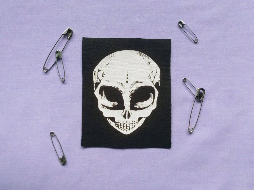 Little Gray Alien Skull Cyberpunk Sew-on Patches
