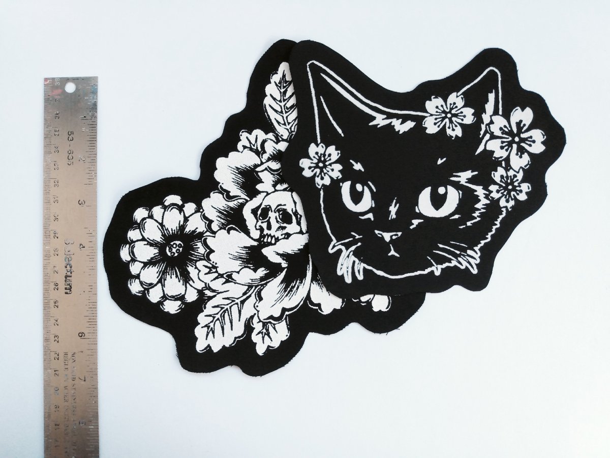These patches are designed, screen printed and fully handmade. They can be used to customize, reinvent and repair clothes. They will add sentimental value to your vests, jackets, jeans, hats, etc.