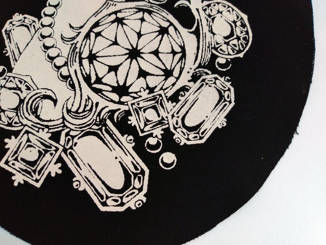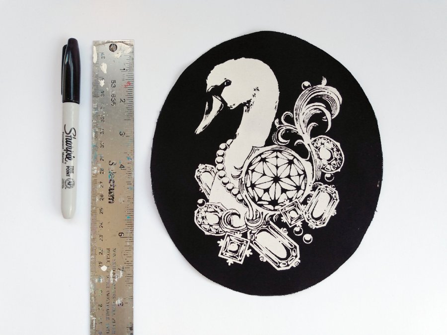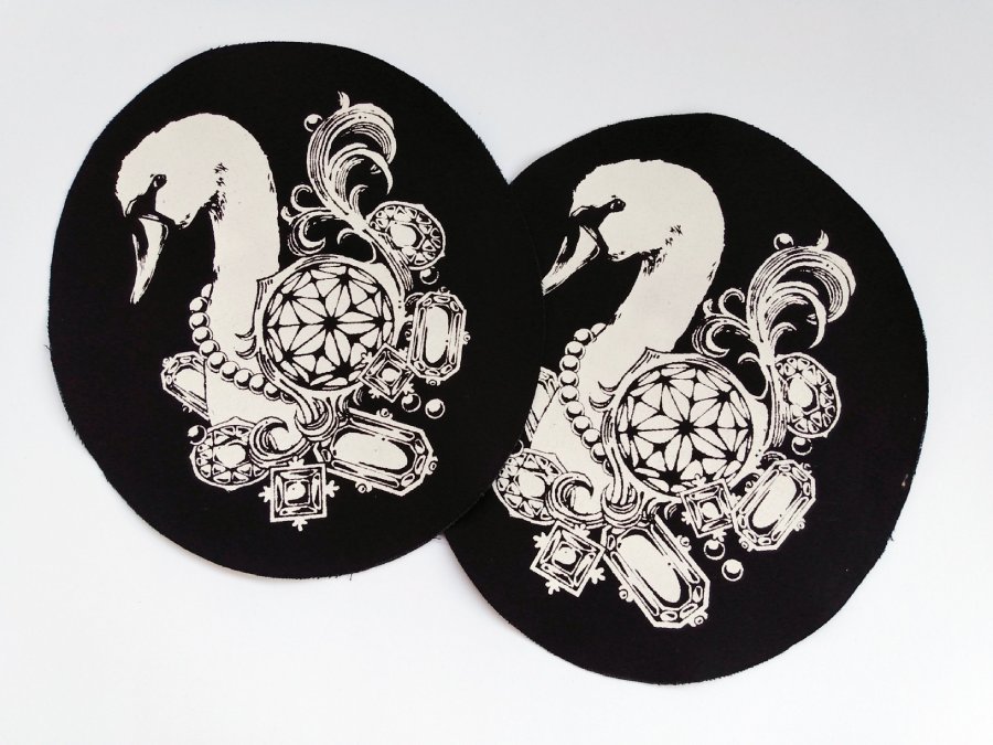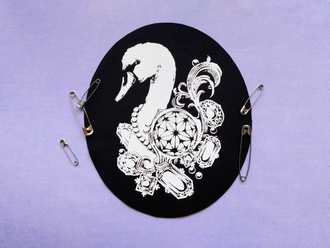 Swan with Diamonds and Pearls Goth Punk Patch - Black, White