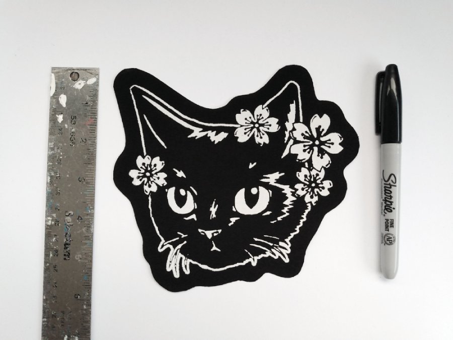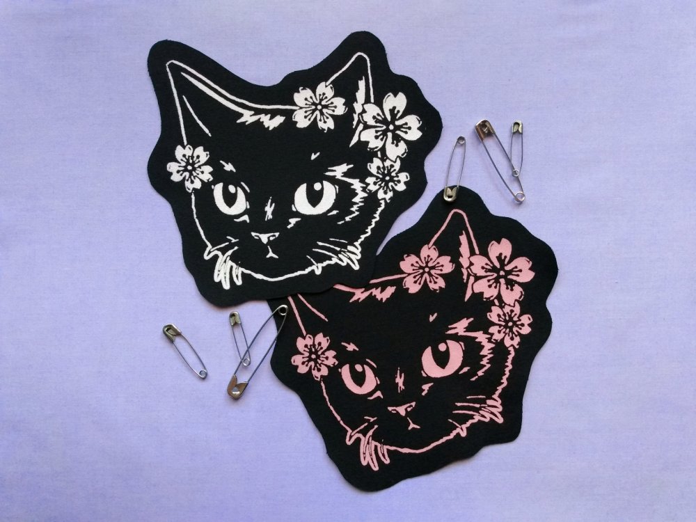Japanese Black Cat & Sakura Cherry Blssoms Patch