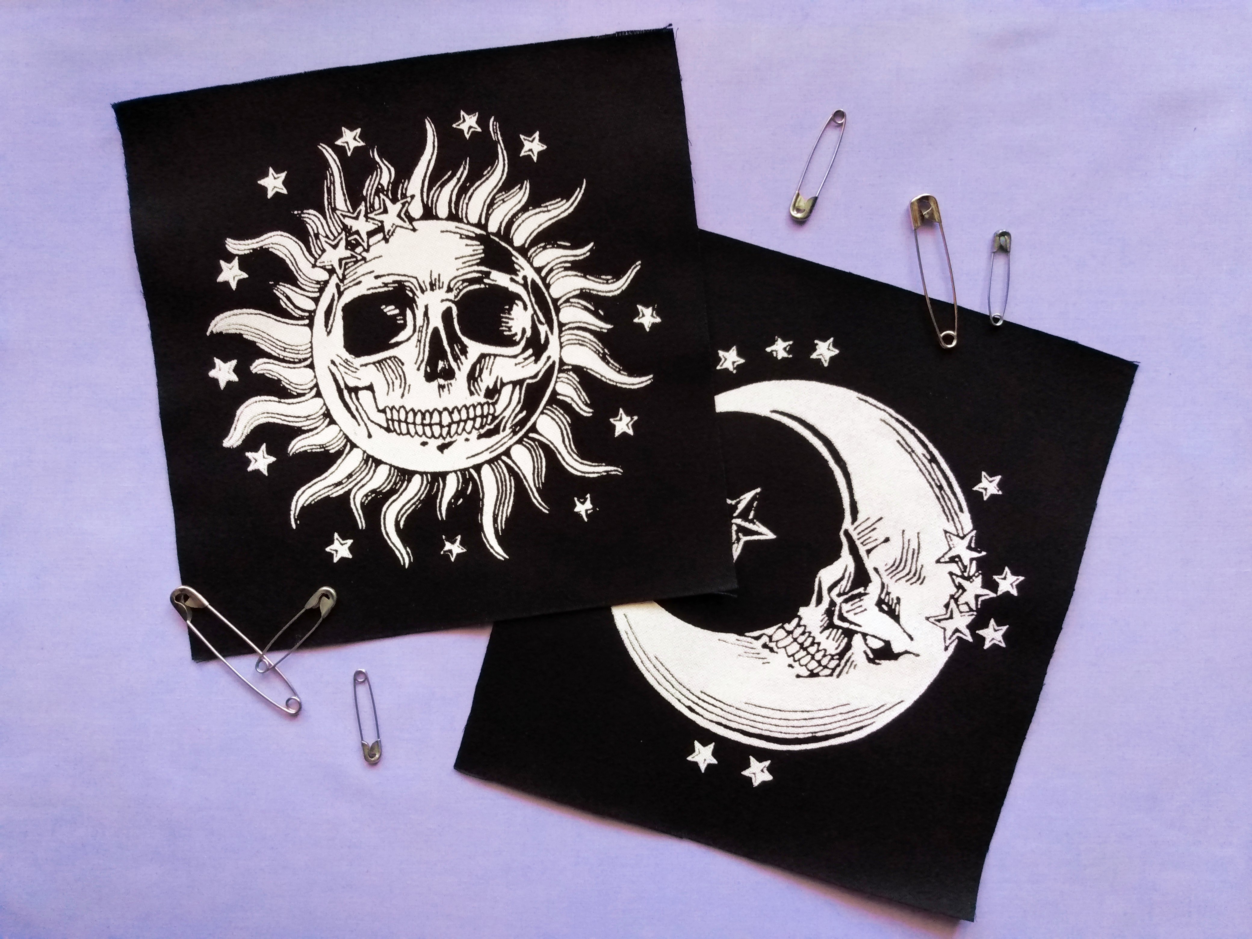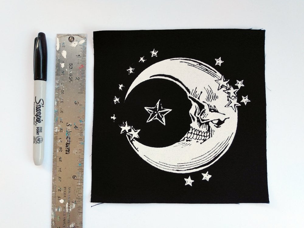Moon Skull with Stars Steampunk Goth Sew-on Patches