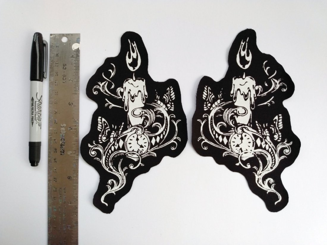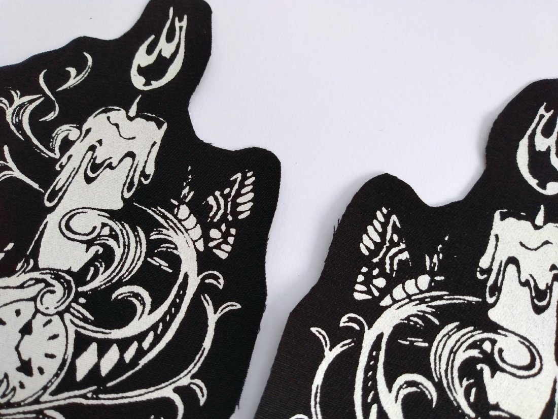 An altered version of our popular Ouija back patch, these are all drawn, designed & printed, and are 100% original and handmade. They can be used to customize, reinvent and repair clothes. They will add sentimental value to your vests, jackets, jeans, hats, etc. thus make great gifts as well!
